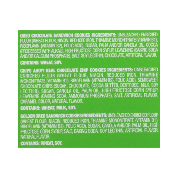 These Nabisco Sweet Treats Cookies are ideal for enjoying at home, school, the office or while on the go. They contain no trans fat or cholesterol. Each pack of these Nabisco cookies, 30-count, comes with Oreo chocolate sandwich cookies, golden Oreo sandwich cookies and Chips Ahoy! real chocolate chip cookies. OREO CA! VAR PAK 2CT