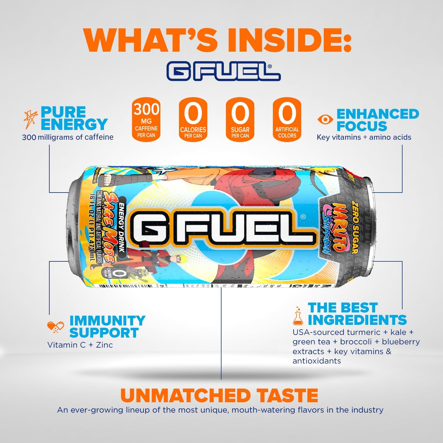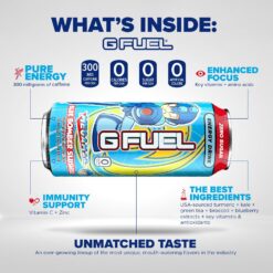 - MAKE THE SWITCH TO CLEAN ENERGY: Whether it’s for gaming, work, school, your workout, or daily pick-me-up, G Fuel’s antioxidant-rich, focus-enhancing zero sugar energy drinks will give you the edge you need to power through your grind! Use our energy beverage as a pre gaming drink, pre workout, coffee or soda alternative, and for much more!