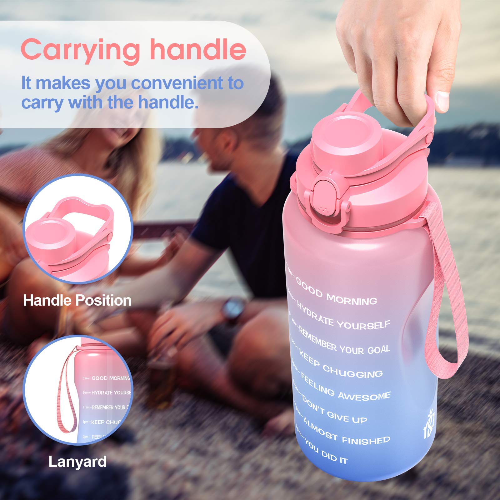 - 【Large Capacity & Lightweight Portable】64oz capacity water bottle might equal to 7 or 8 cups, which will meet your normal water needs for a day. No need to refill the bottle many times. It is durable to use and lightweight and easy to drink, easy to fill, easy to clean, it makes you easier to carry it to anywhere. This water bottle is a great companion for you in daily water drinking.