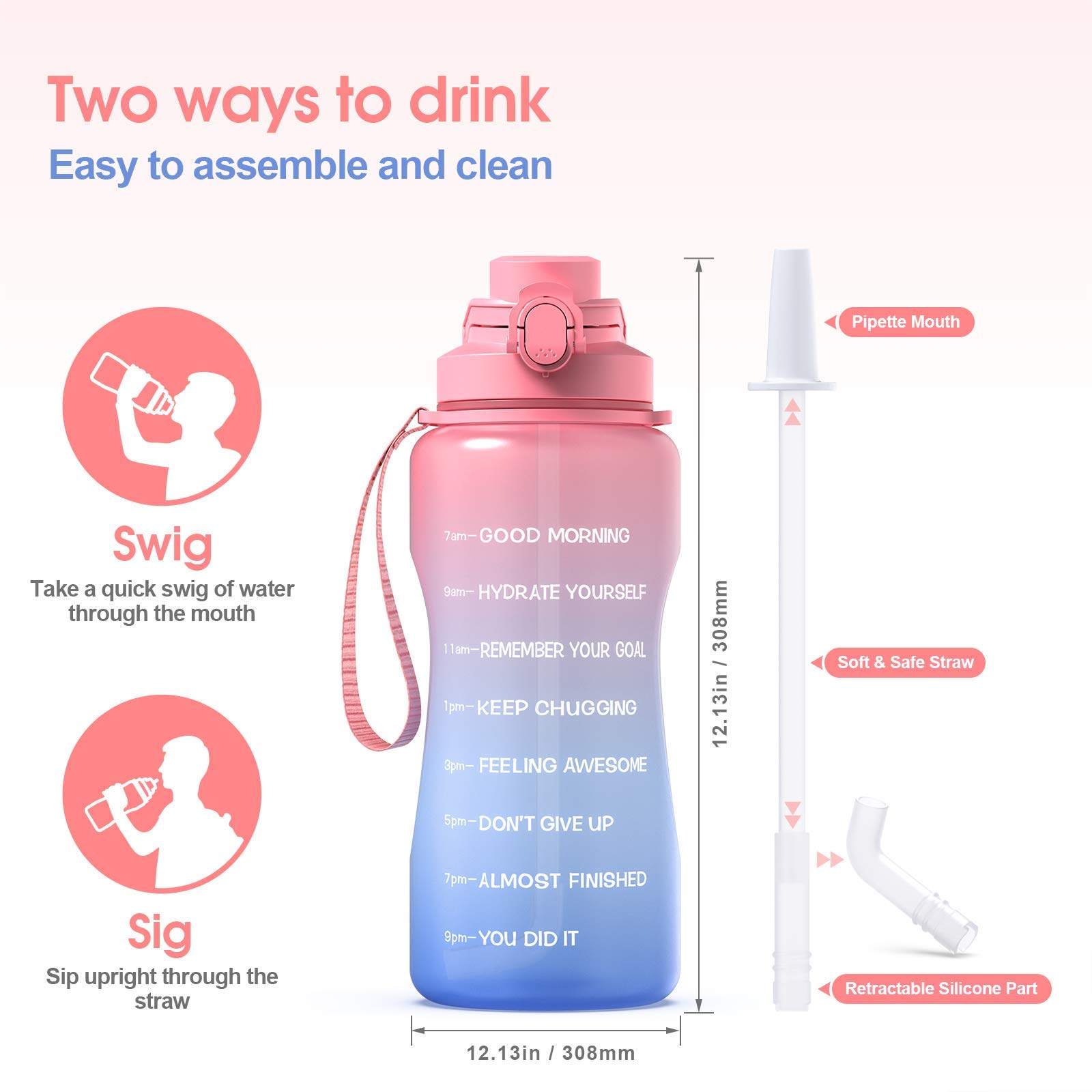 - 【Ideal Gifts】This water bottle is designed to help you drink more and stay hydrated! Various colors to choose from, which is the best present idea for yourselves, family members, friends, coworkers, women and men who enjoy a healthy lifestyle.