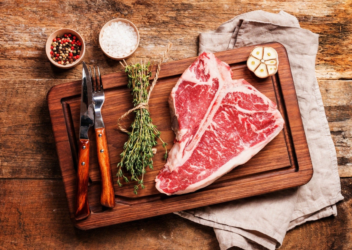 The Best of Both Worlds – a juicy strip on one side of the bone and a tender filet mignon on the other. Choose from our hearty 22oz or for a true culinary adventure, try our 34oz Steak for Two!